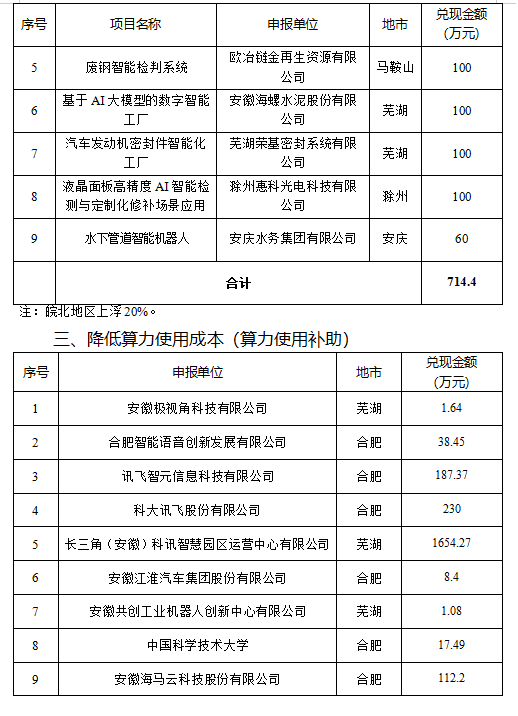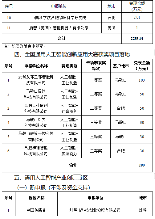 关于下达《打造通用人工智能产业创新和应用高地若干政策(2.0版)》2025年第一批政策兑现的通知各有关单位: 根据《打造通用人工智能产业创新和应用高地若干政策(2.0版)》(皖政秘〔2025〕108号)和《打造通用人工智能产业创新和应用高地若干政策(2.0版)实施指南》(皖科智能秘〔2025〕262号),经推荐申报、形式审查、会议评审、现场考察、公示等程序,确定《打造通用人工智能产业创新和应用高地若干政策(2.0版)》2025年第一批政策兑现安排。 特此通知。 联系电话:0551-62674421/62653528 附件:《打造通用人工智能产业创新和应用高地若干政策(2.0版)》2025年第一批政策兑现安排.docx 2025年9月28日 ![]() ![]() ![]() ![]() |