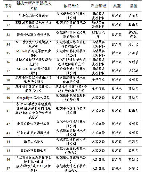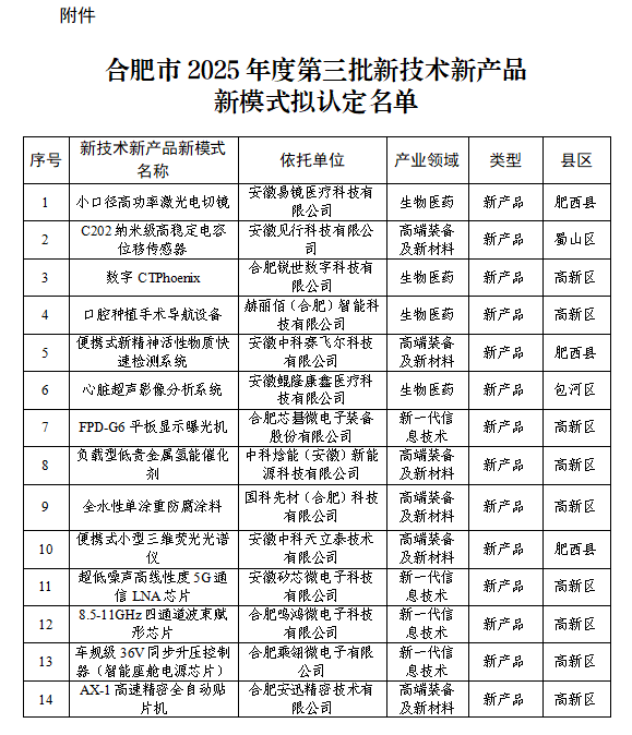 关于合肥市2025年度第三批新技术新产品新模式拟认定名单的公示根据《合肥市新技术新产品新模式认定及推广实施方案(试行)》(合科创委办〔2022〕16号)文件要求,市科技局组织开展了合肥市2025年度第三批新技术新产品新模式认定工作。经专家评审和会议研究,现将结果予以公示,公示期5个工作日(2026年1月4日至2026年1月8日)。 公示期间,如对公示名单有异议,任何单位或个人可向市科技局机关纪委提出。对公示名单提出异议,要以书面形式详细写明异议的内容和事实根据。以单位名义提出异议的,应写明单位负责人和联系人姓名,并加盖本单位公章;个人提出异议的,应写明本人真实姓名、工作单位、联系地址和方式。 联系单位: 市科技局科技招商处(人工智能领域)电话:0551-63538664 市科技局科技产业服务处(量子信息领域)电话:0551-63538650 市科技局成果转化促进处(其他产业领域)电话:0551-63537767 市科技局机关纪委电话:0551-63538658 附件:合肥市2025年度第三批新技术新产品新模式拟认定名单.docx ![]() ![]() ![]() ![]() |