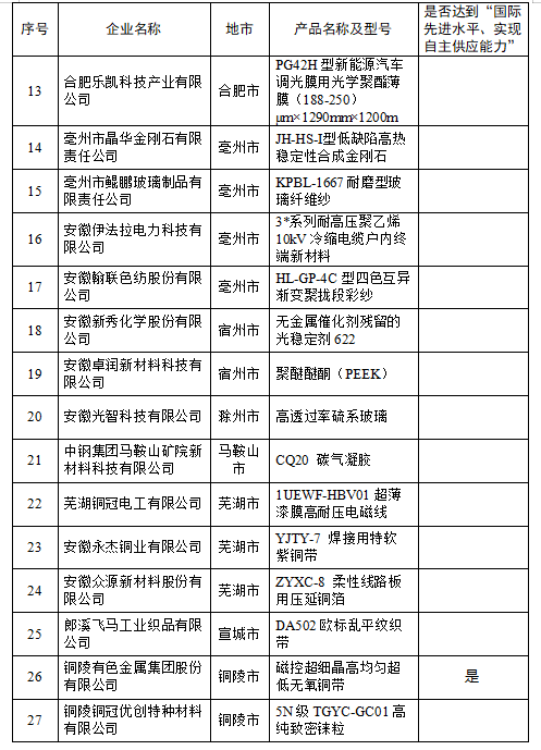 安徽省工业和信息化厅关于公布2025年安徽省首批次新材料(第二批)名单的通知各市工信局: 为贯彻落实《支持首台套重大技术装备首批次新材料首版次软件发展若干政策》(皖政秘〔2023〕243号),根据《安徽省首台套重大技术装备首批次新材料首版次软件评定管理暂行办法》(皖经信装备函〔2023〕167号)、《安徽省工业和信息化厅关于组织开展安徽省首批次新材料(第二批)申报评定工作的通知》等要求,经企业申报、所在市工信局及有关联动创新区审核推荐、专家评审、现场核查、公示等程序,评定2025年安徽省首批次新材料(第二批)34项,其中4项达到“国际先进水平、实现自主供应能力”,现予以公布。 附件:2025年安徽省首批次新材料(第二批)名单 安徽省工业和信息化厅 2026年1月13日 ![]() ![]() ![]() |